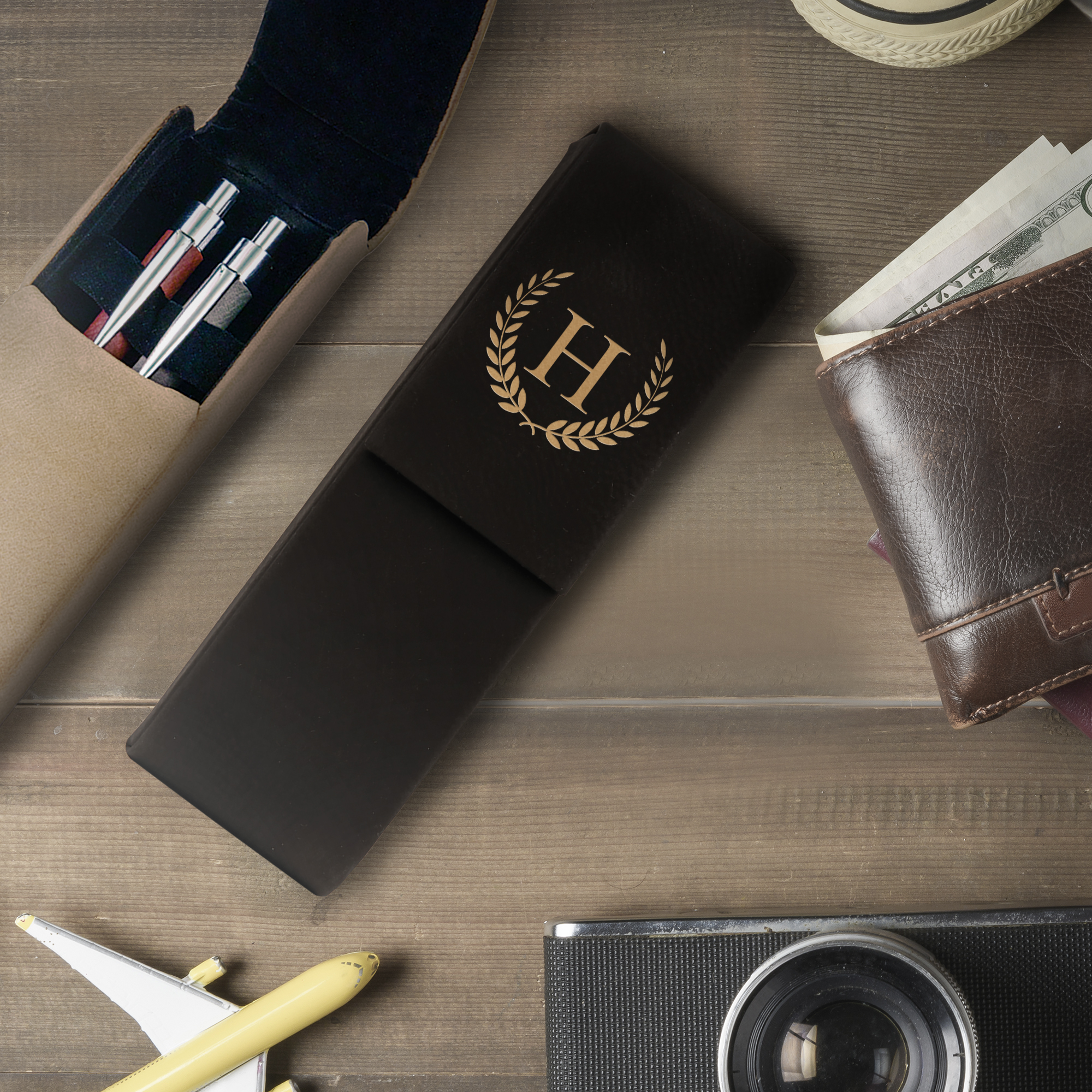 Personalized Horace Leatherette Double Pen Case