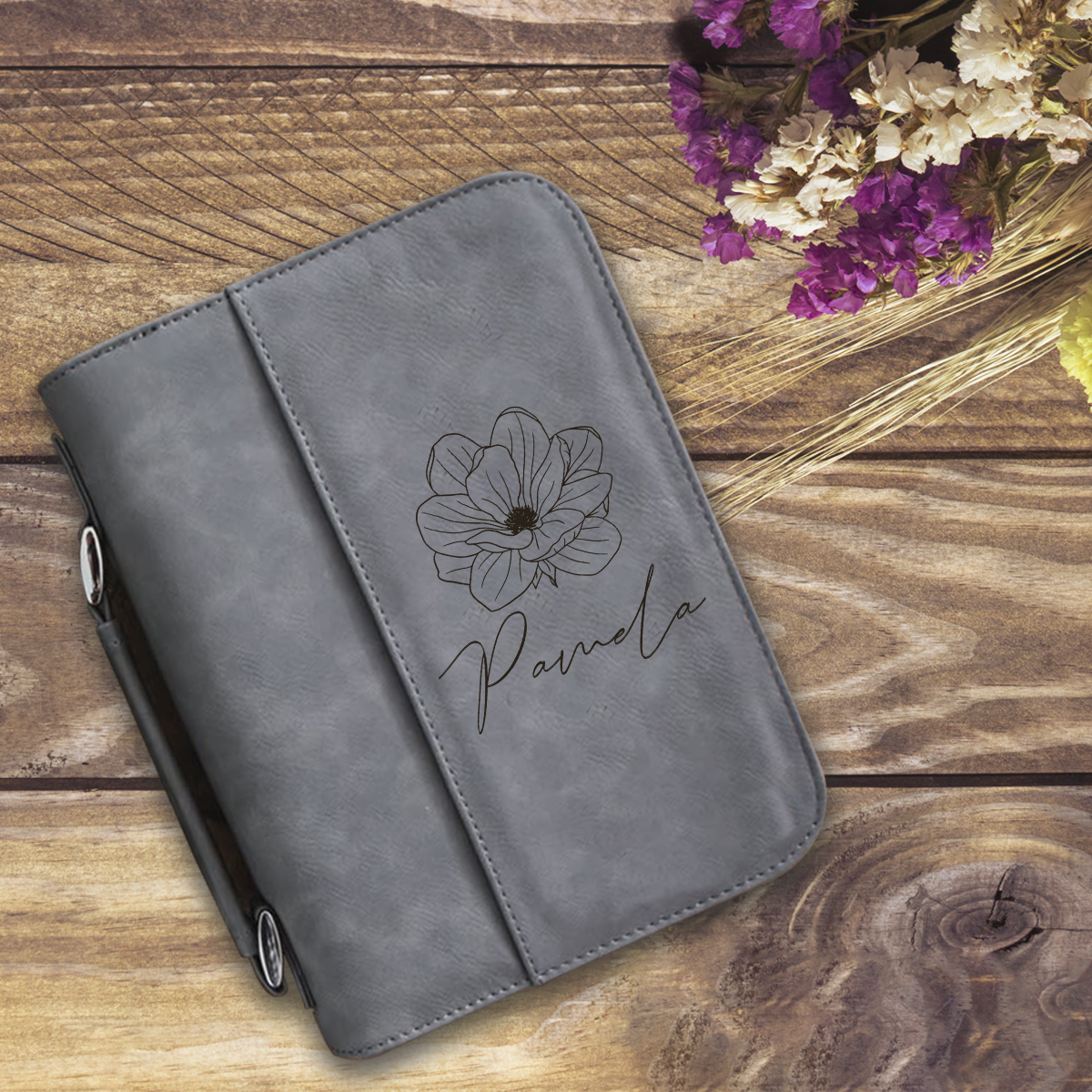 Personalized Blossom Leatherette Book/Bible Cover with Handle and Zipper
