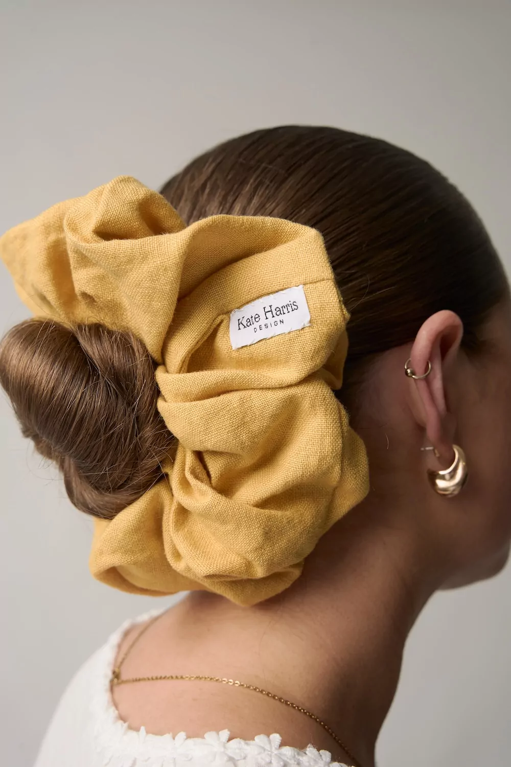 The Irish Linen Bun Cover Scrunchie in Mustard