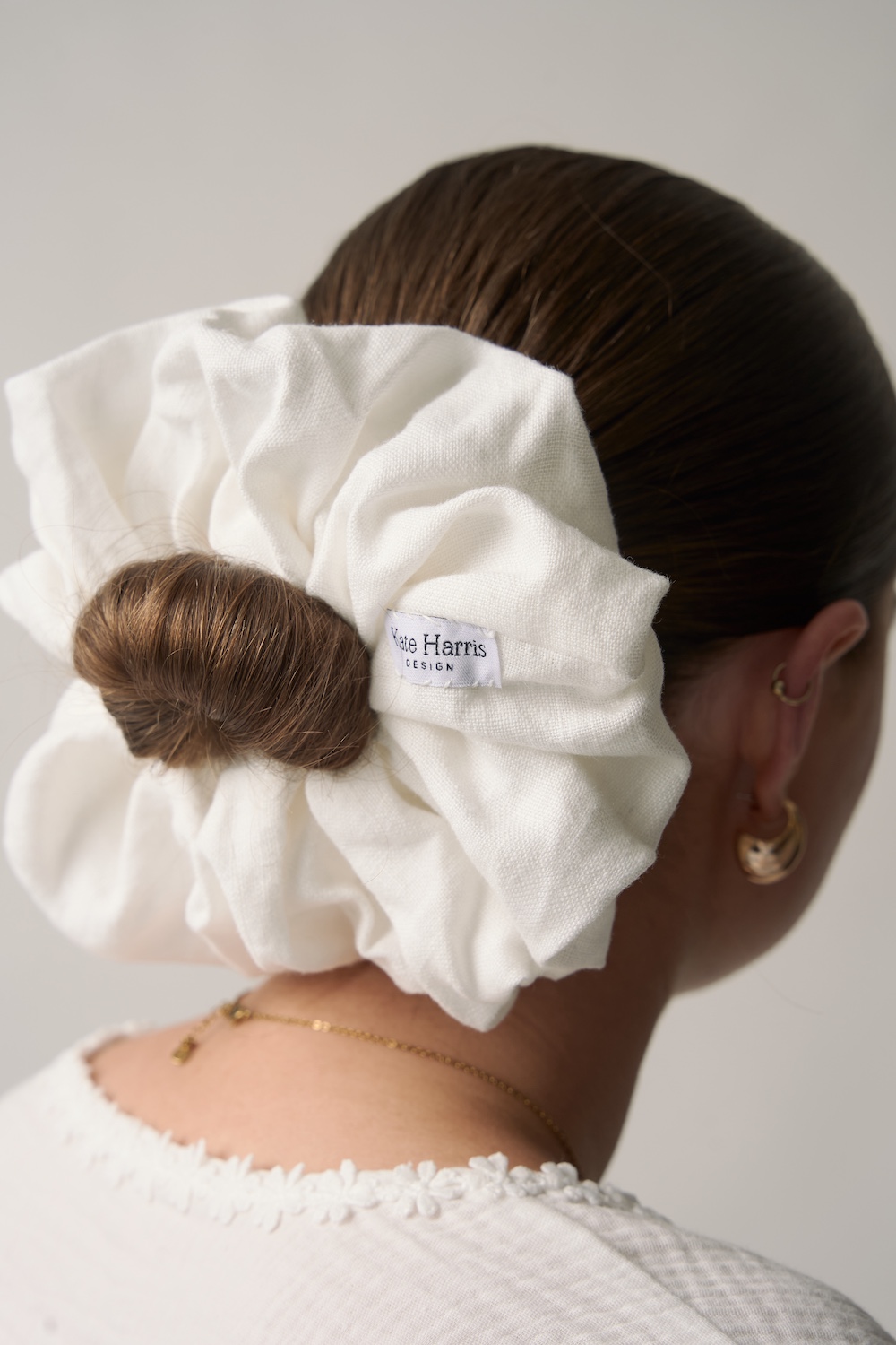 The Irish Linen Bun Cover Scrunchie in White