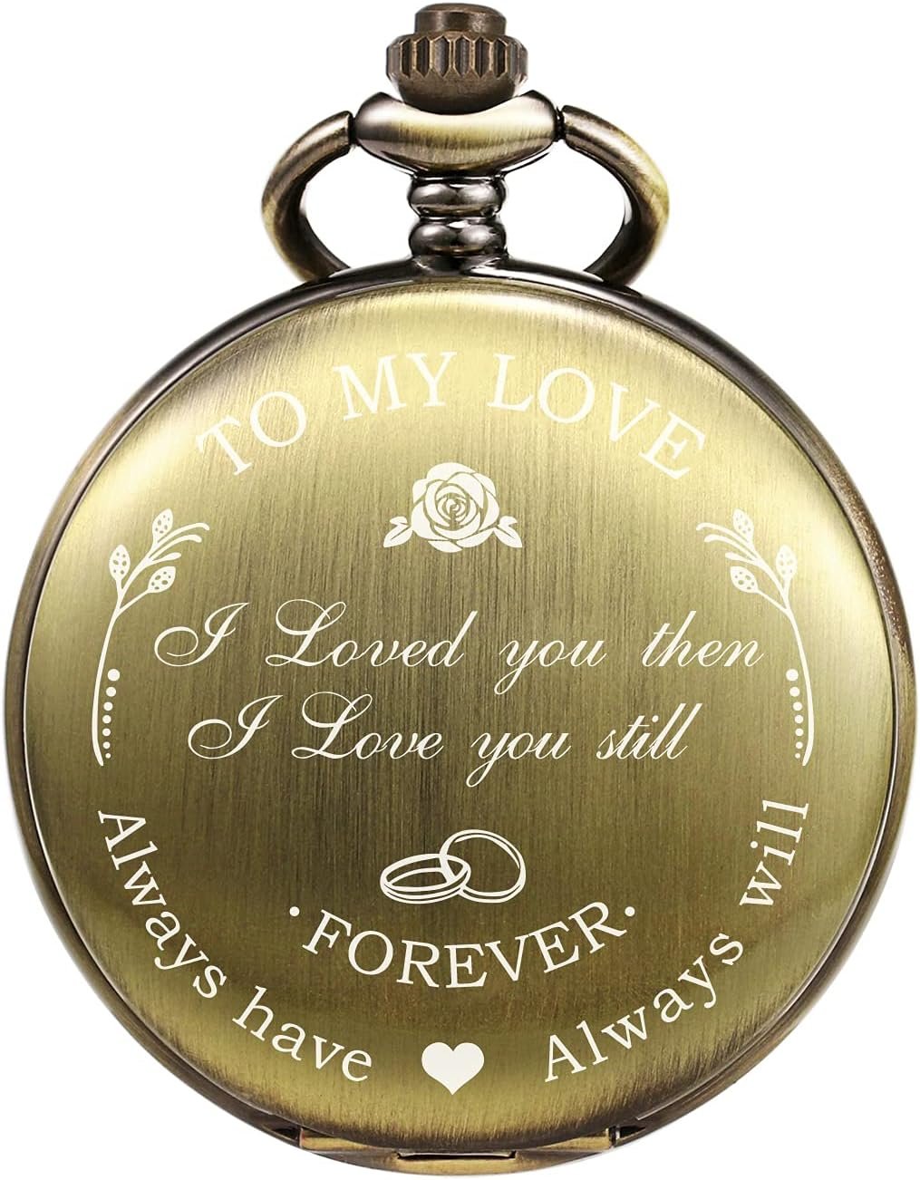 Mens Womens Quartz Personalized Pocket Watch Engraved Engraving Customized with Chain Gift Box Wedding Gift for Groomsman Bestman Husband Dad Love