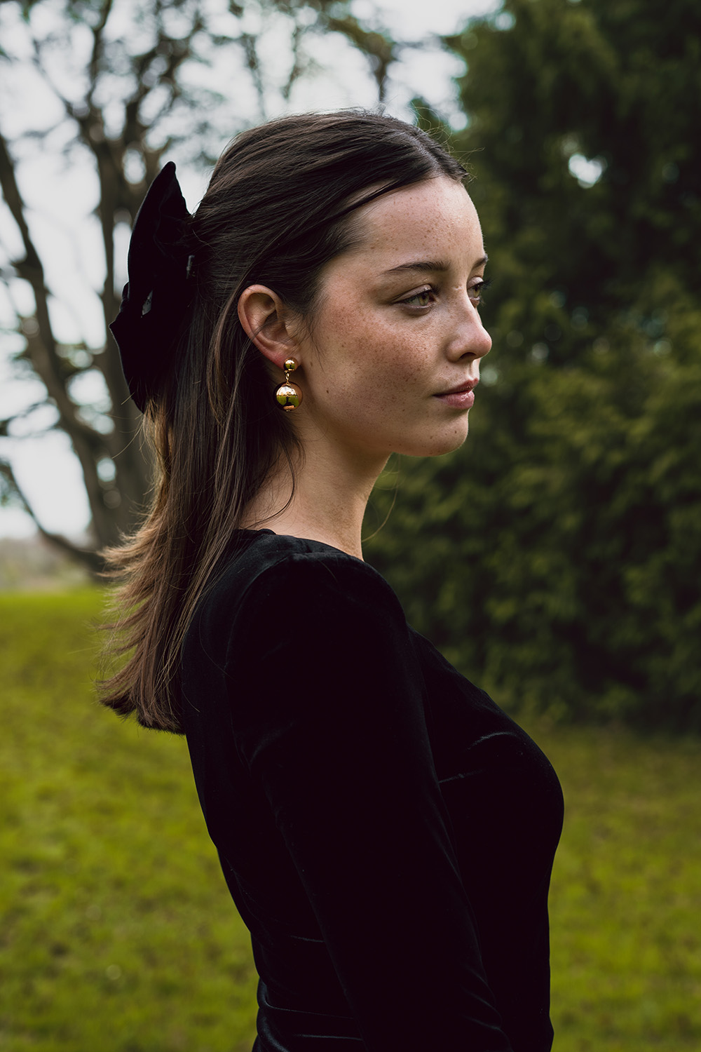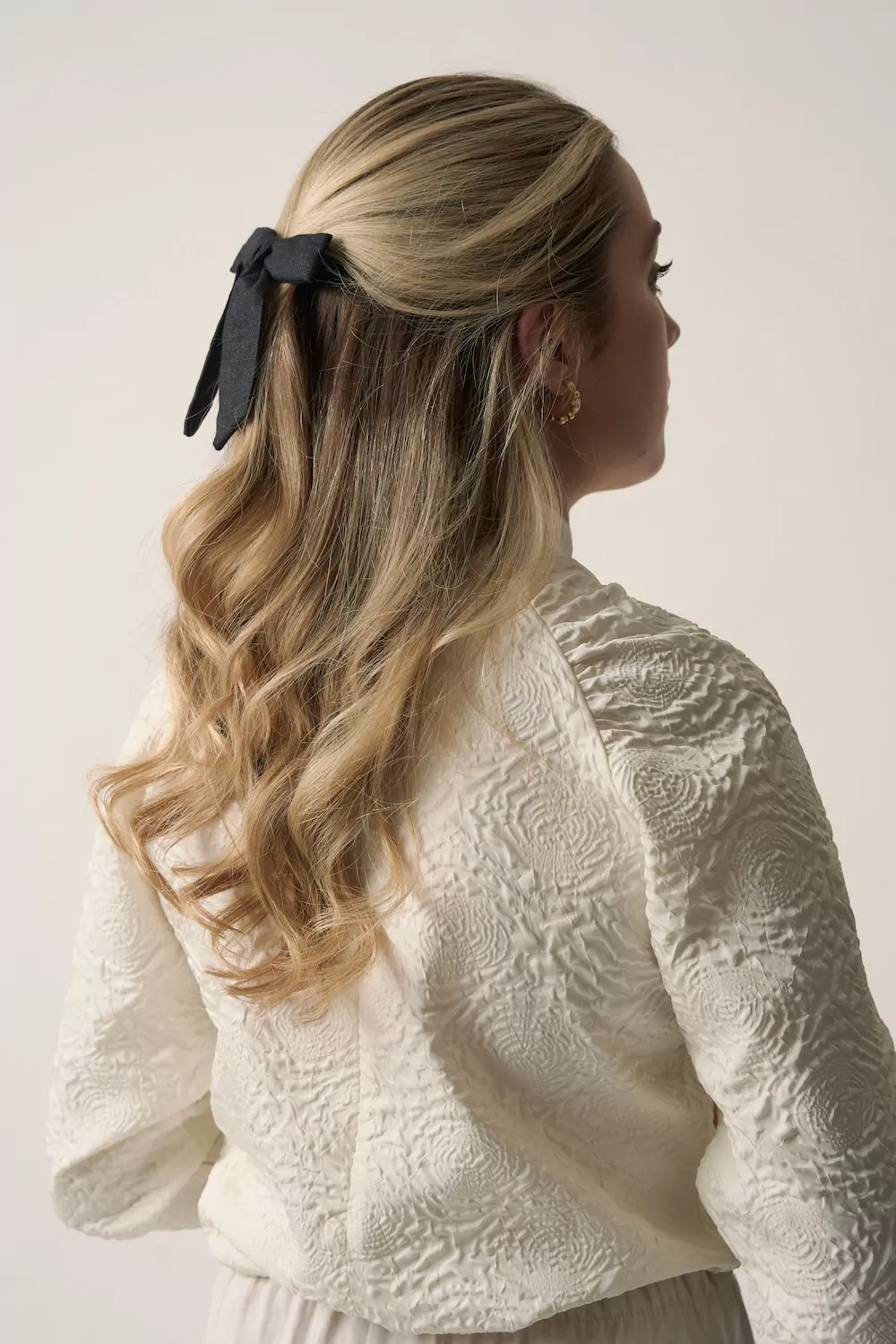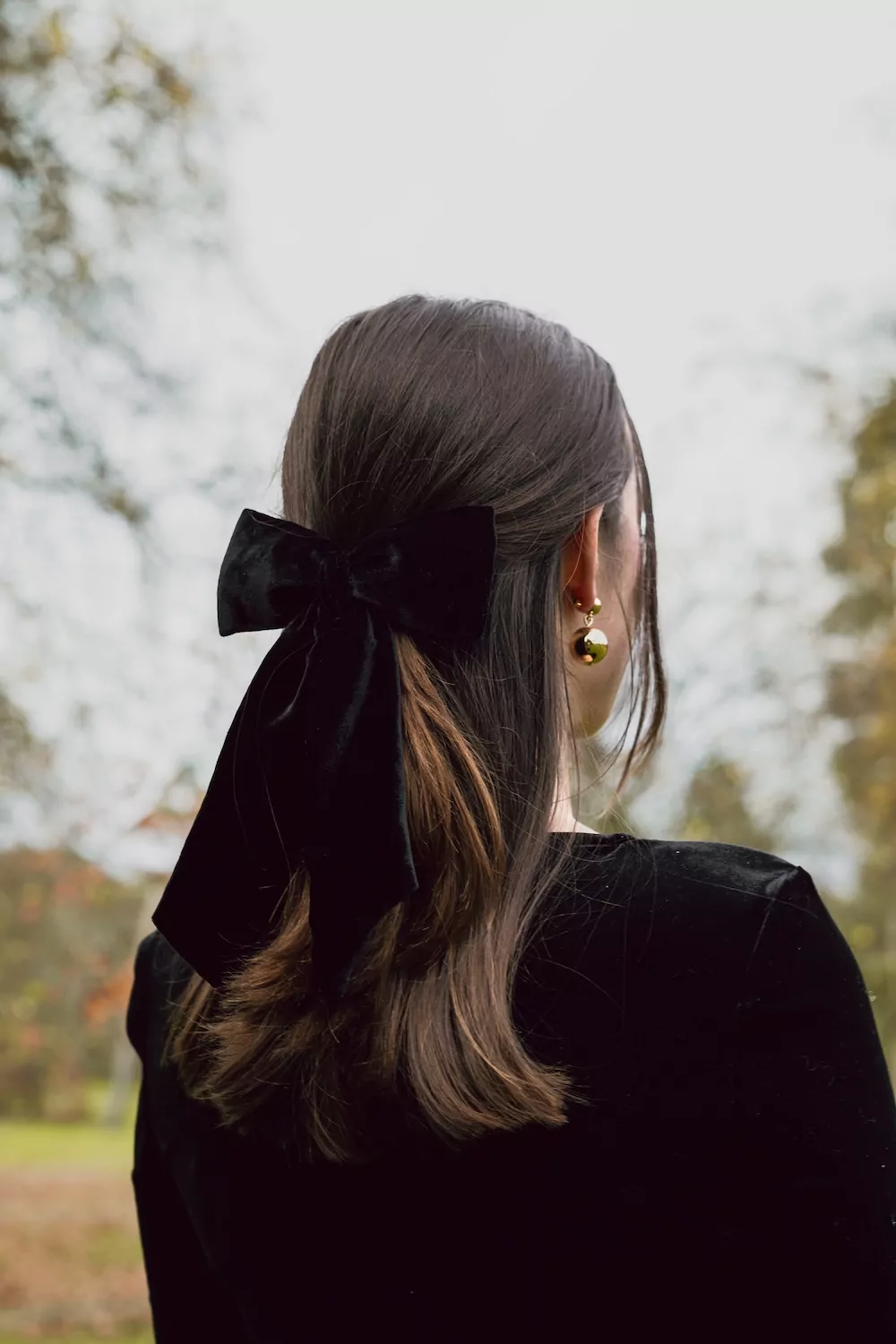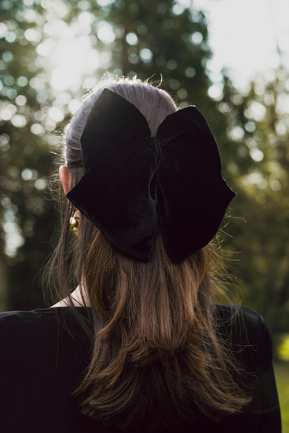 Black Silk Velvet Long Hair Bow
