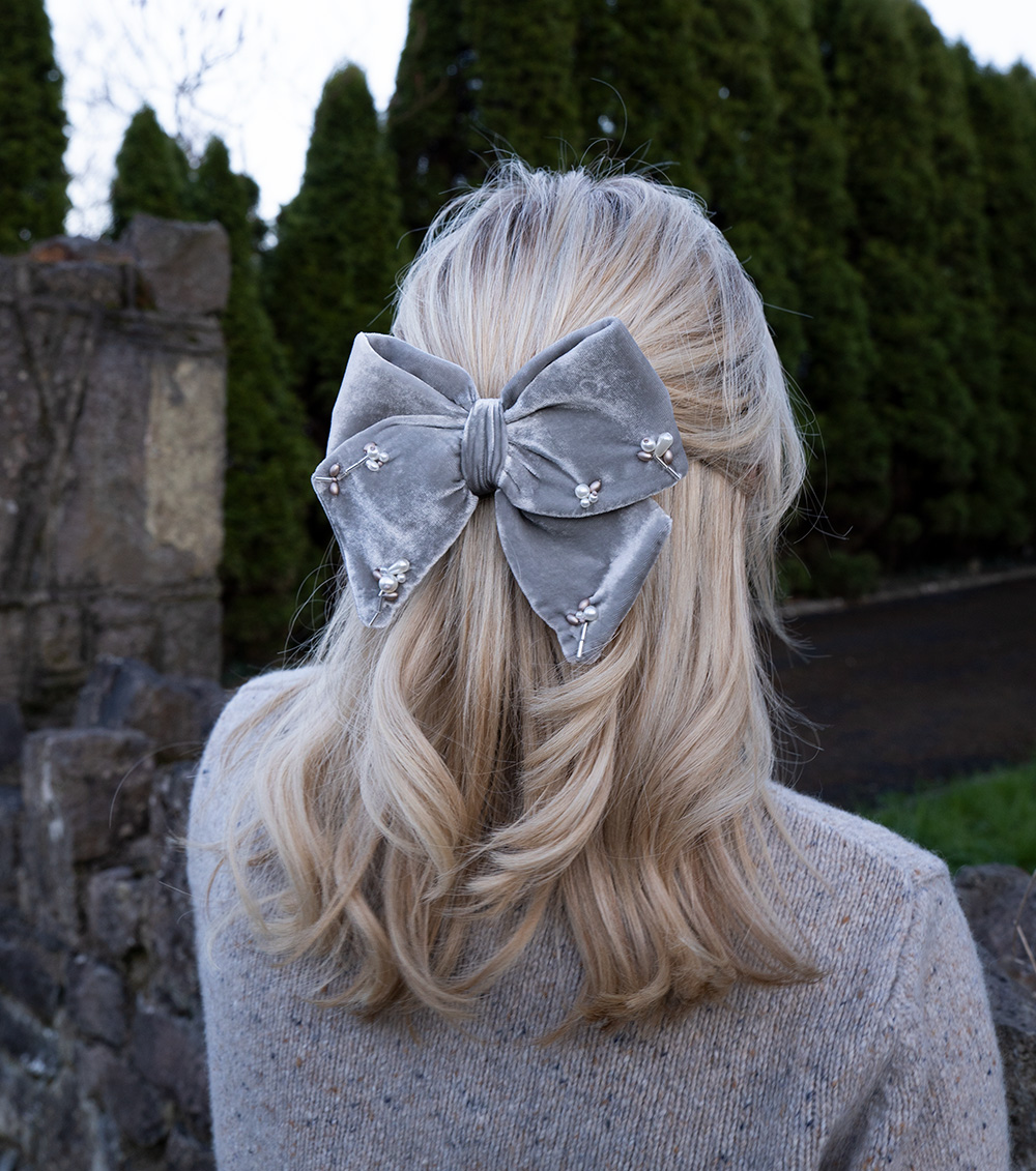 Silver Silk Velvet Sailor Bow
