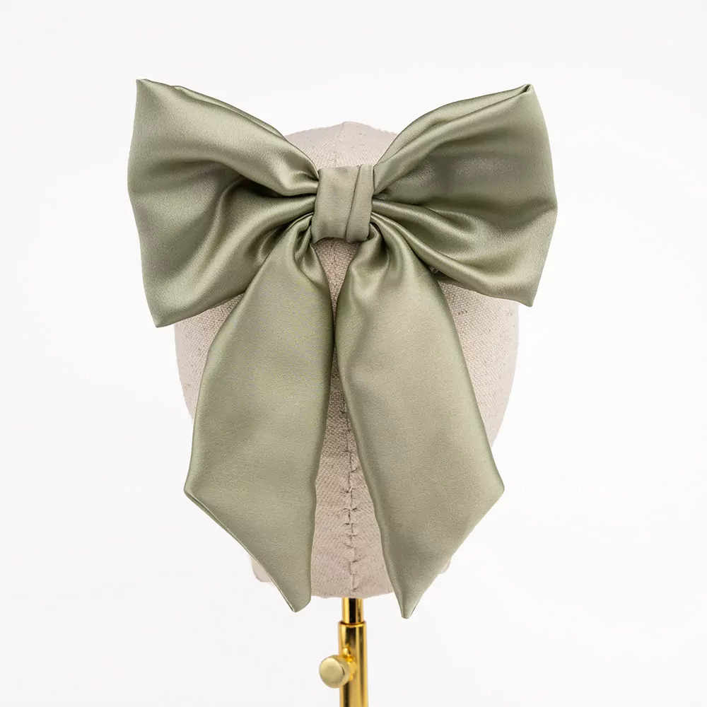 Sage Green Silk Satin Barrette Clip Bow