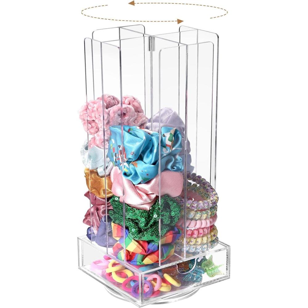 OAOLEER Acrylic Scrunchie Holder Organizer, Hair Ties Display Stand, 4 Tier Hair Accessories Organizer Storage for Bracelets Bangle Watches (Type-A)(Type C)