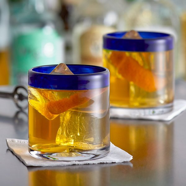Blue Rim Handblown 12oz Glass Tumbler Drinkware (Set of 6)